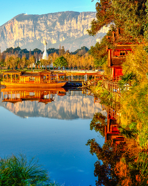 on the bank of Dianchi Lake with an area of 1270 acres, where is a place has gathered the 25 ethnic minority groups in Yunnan Province together. In each village, buildings are built as their actual size in the local area. It is a window which represents and displays the culture and the custom of the 25 ethnic minority groups in Yunnan. It has become a well-known ethnic culture theme scenic spot domestic and overseas since 1992.